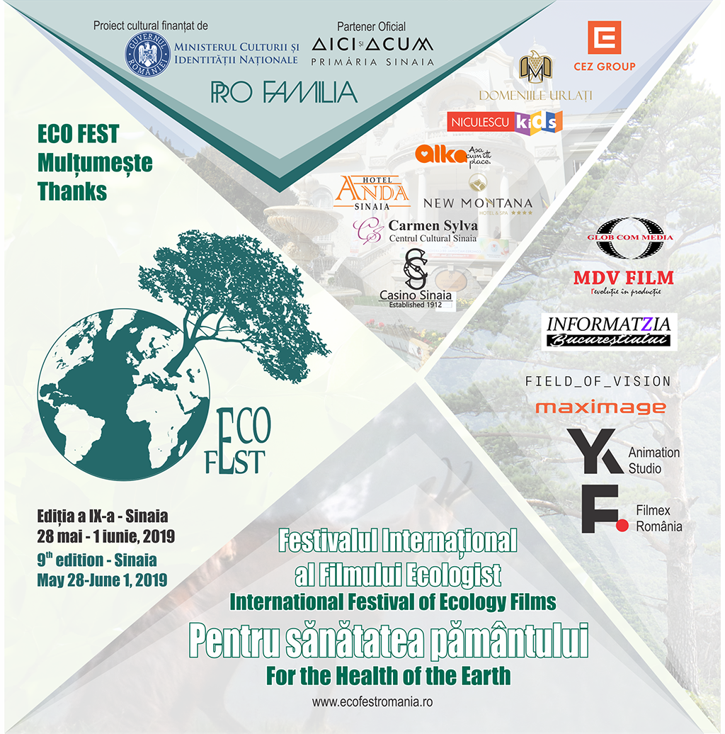 In an increasingly turbulent world, in which globalization becomes increasingly controversial, the issue of safeguarding nature and the environment has become planetary and synonymous with the survival of humanity itself. In the often dissonant concert of political, economical, social and scientific factors, the voice of cinematic art is perhaps the most convincing and is unifying energies, with a decisive impact on individual and collective consciousness. The 9th. edition of ECO FEST aims to continue its vocation to address with predilection to youth, to inform, educate and make responsible first and foremost the young generation, the beneficiary of the future of the planet. Vladimir Marin – Artistic Director ECO FEST |